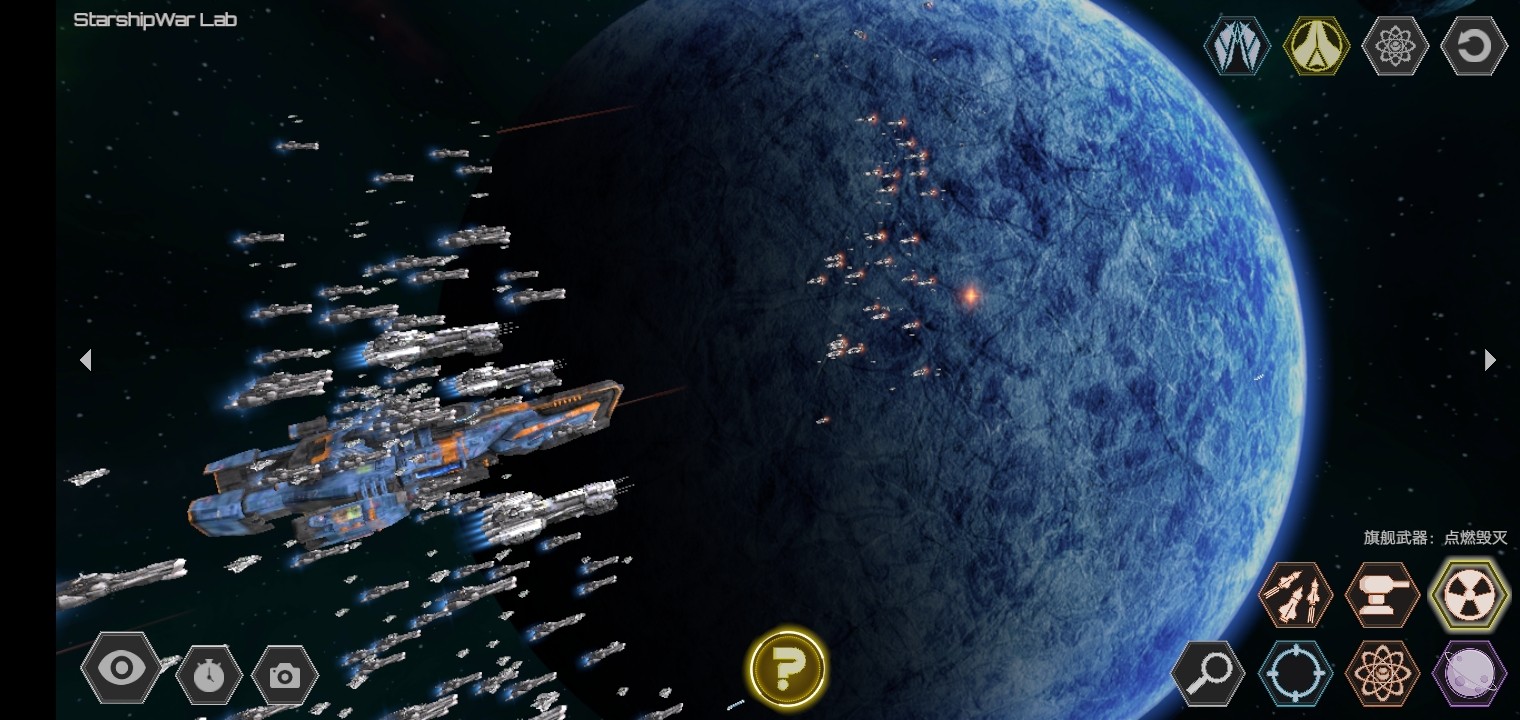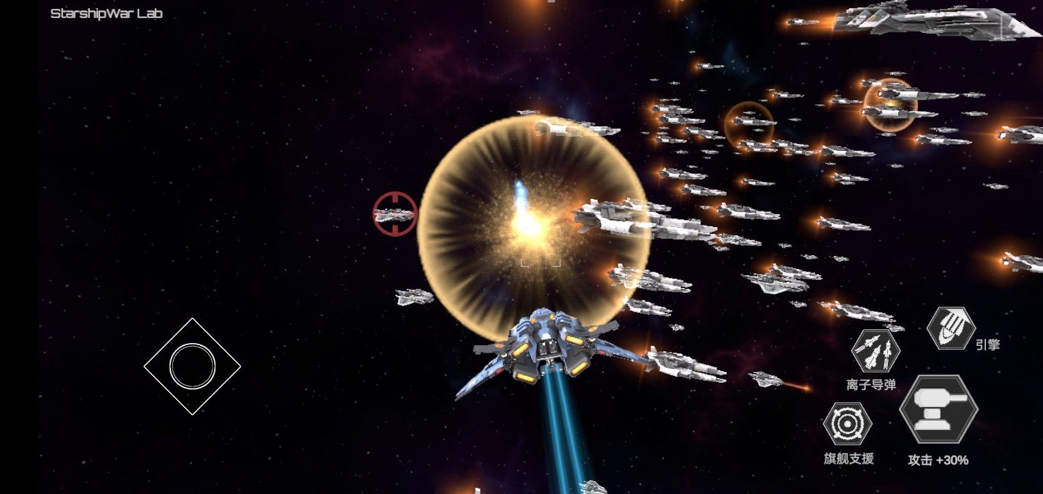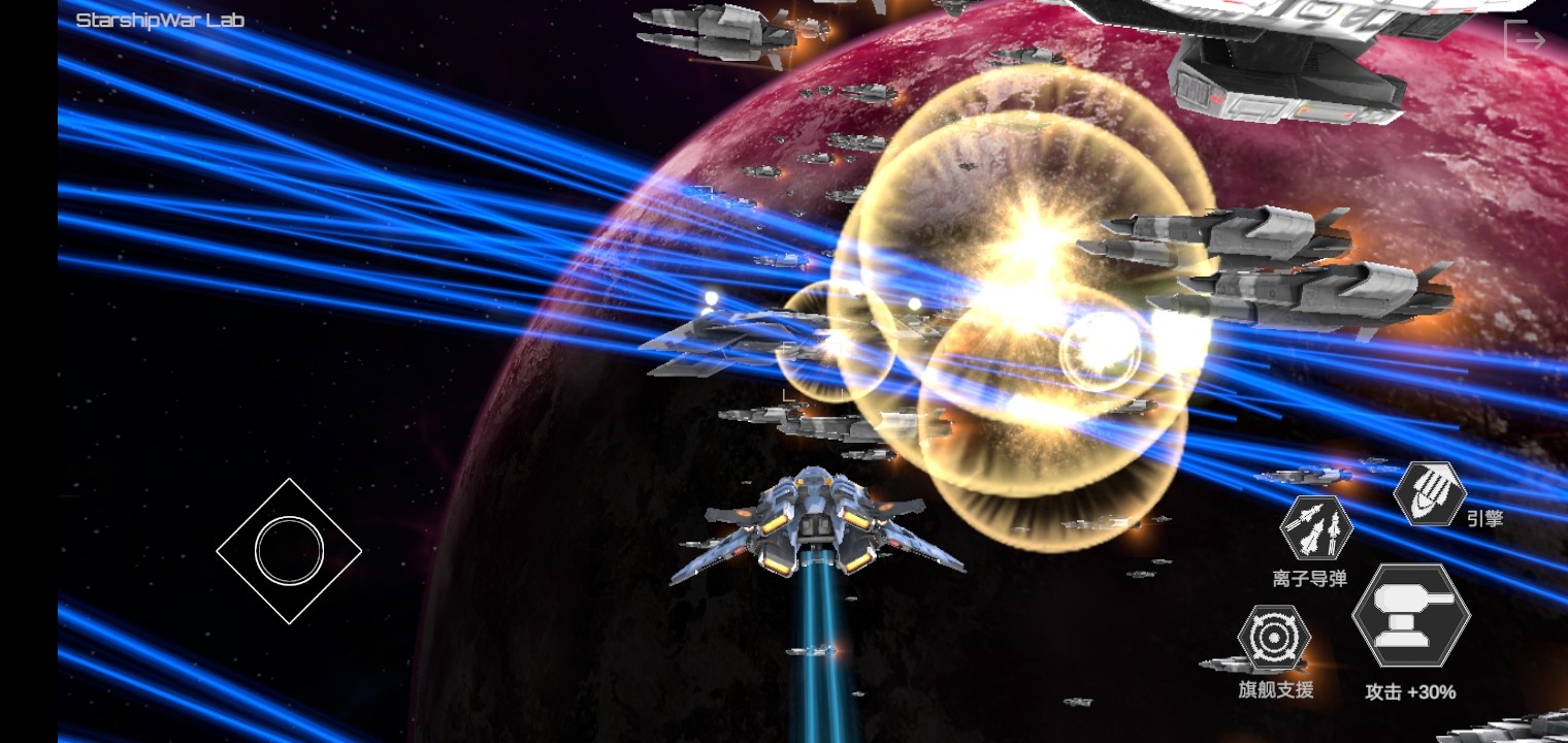 1、旗舰及其护卫舰发射激光,对所瞄准的目标进行打击,长按可持续攻击。
