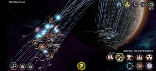 本来还应该有离子导弹的,可惜截图丢了,就是从战机上冒出一根一根蓝线,这头是战机,那头是红框选中目标。