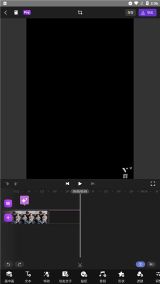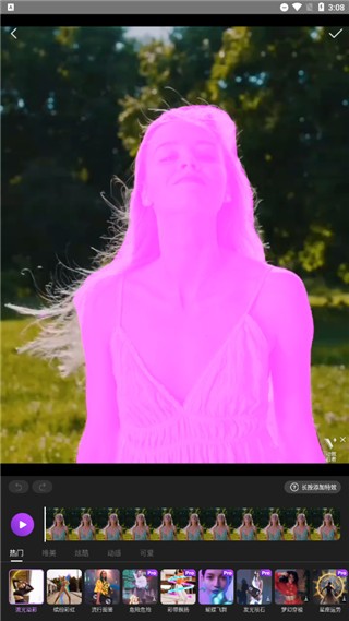 4、选择好后,用户可以自由添加特效、贴纸以及动态文字等。