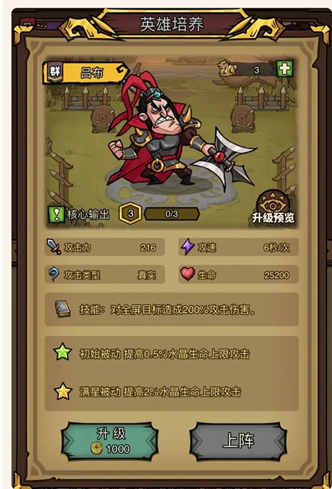 ①从吕布的属性分析:6秒/次的攻击频次明显发挥不了作用,那么我们需要从攻速上下功夫,为此选择搭配吴国组合。