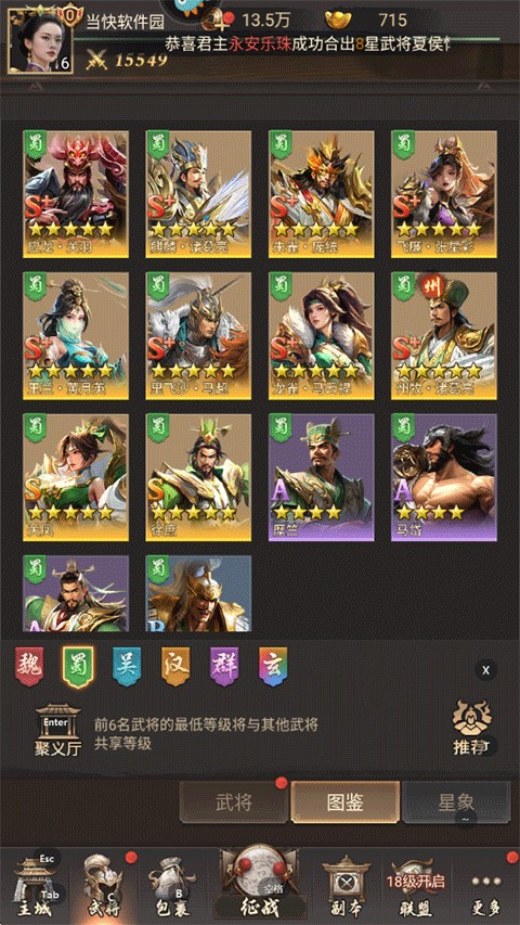 2、玩家可迅速招揽三国时期的名将,每位将领均拥有独特的技能与属性加成,以增强自身战斗力。