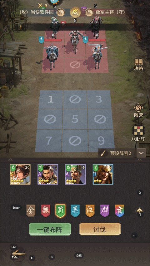2、凭借数百位各具特色的三国武将,每位都拥有独特技能,加之别具一格的羁绊系统,您可以自由搭配阵容。