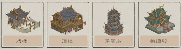 建筑主要分为制作、居所、生产、功能四种,可在页面看到建筑介绍、繁荣度、耐久、所需材料。