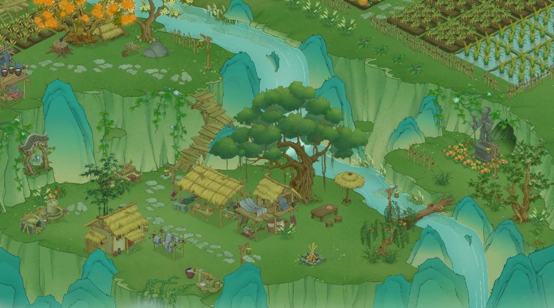 4、采用更有表现力的斜45°视角,有更大更丰富的地图。桃源记2的山谷大小约为桃源记1的4倍以上。