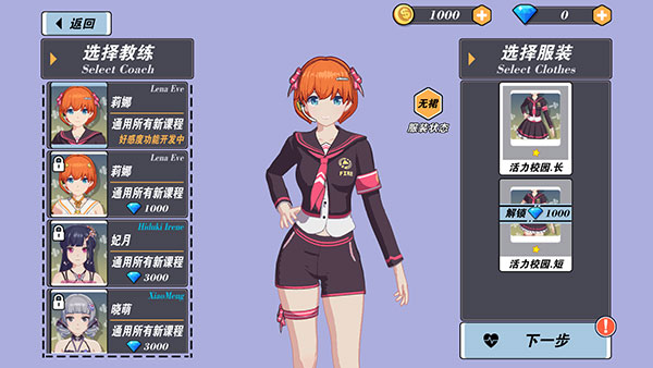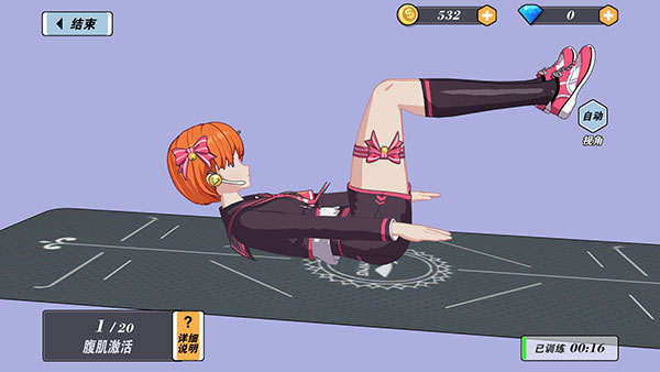2、可以通过完成健身任务来进行角色养成,解锁不同的教练、服装和动作。