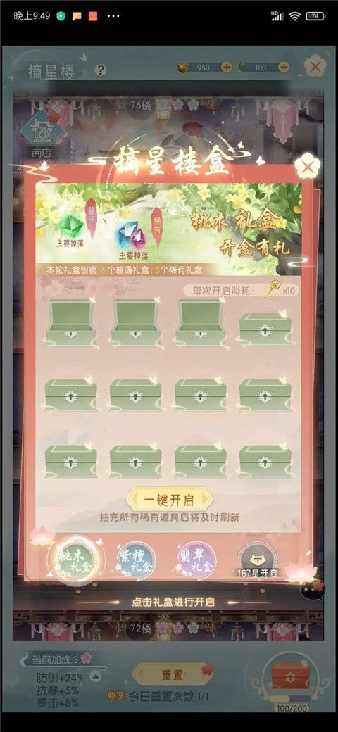 3、桃木礼盒(绿)开启掉落:星辰砂砾,星辰结晶。