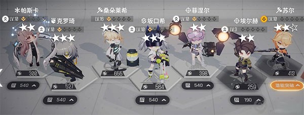 5、碎片副本:公测的时候第一天就能打10次碎片本,但前期体力有限,建议只刷阵容内人形(帕斯卡除任务不用多刷),推荐优先把主C和克罗琦刷到四星再去刷其他人形的碎片。