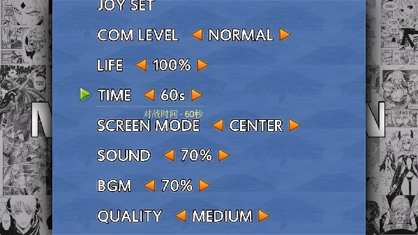 2、其中我们可对游戏内的对战时间、血量、操作方式等各项内容进行自定义的设置