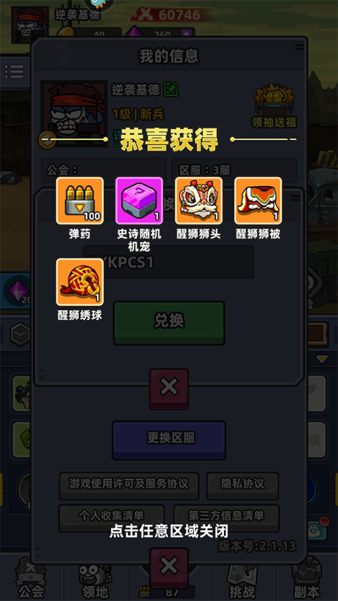 XYKPCS1:弹药*100、紫色机宠随机*1、醒狮狮头*1、醒狮狮被*1、醒狮绣球*1