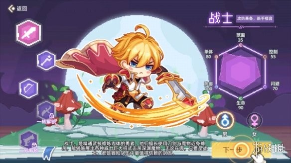2、接下来,玩家可以选择角色的性别和姓名,然后再挑选战斗属性,如战士、术士、弓箭手、暗影使者、火枪手等等。