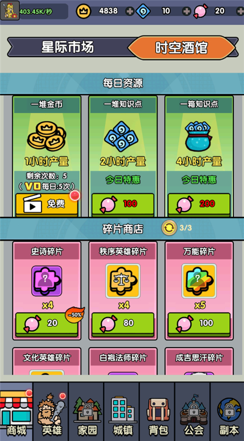 在我们的精打细算中,切记别一次把金币次数领完,先把收益最高的建筑升级到极限,再领一次,再升级,再领,如此循环。不要用糖果买知识点。