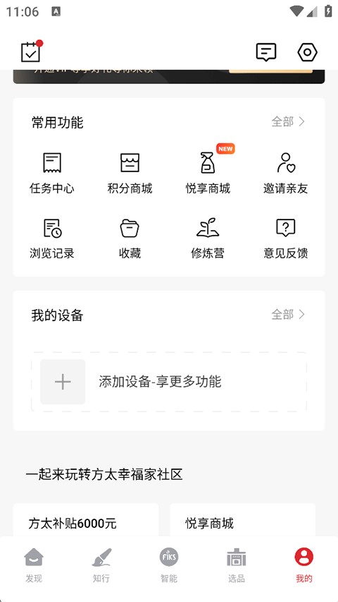 2、知行:每日打卡、修炼营、幸福测试及全部课程;