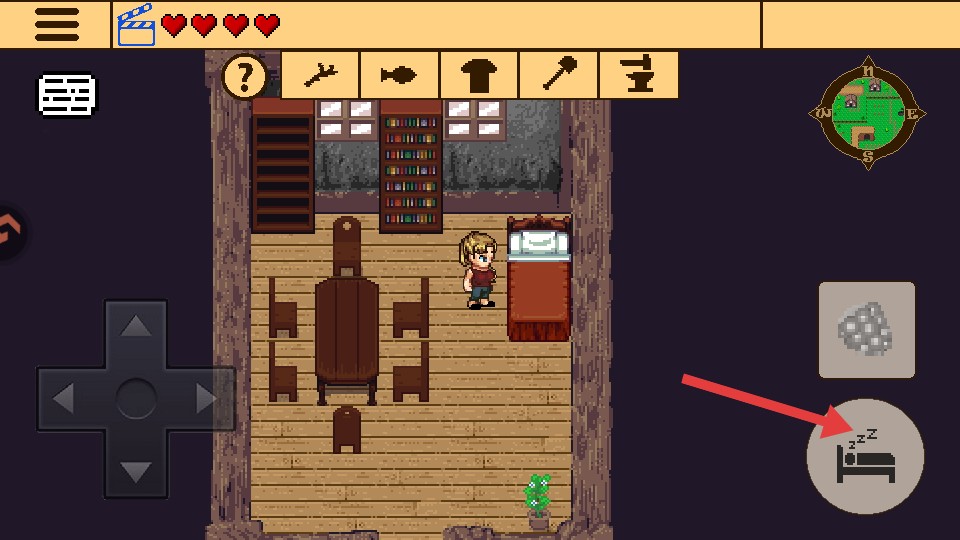 4、进入房间点击睡觉图标,恢复状态,为后续冒险做准备。