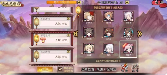 3、优化了日常挑战和资源产出,增加了通天塔层数并与桃花迷阵/擂台赛/五行阵进行资源整合,每日可获取大量声望换取大量资源福利,完成限定任务UR武娘拿不停