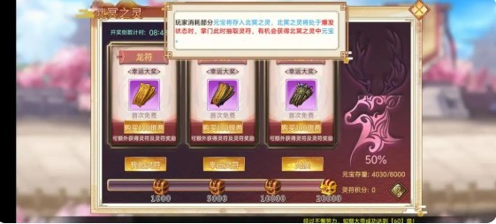④北冥之灵,获取修炼进阶材料的不二之选。注意事项:要在爆发期抽奖,概率抽中元宝,只有风雷符才能兑换进阶材料。根据需求选择抽多少,一般在爆发期能抽到消耗元宝的30%。剩下的符箓可以等下次活动再用。