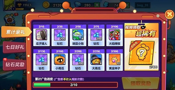 每日任务每日肝满,可以获得165个钻石,如果都看广告双倍领取的话,可以获得330钻石,活跃度达到100,每日可以额外再一个高级魔盒,开盒看运气~每周任务也是同样的,任务难度不大,共计240钻石,双倍则是480钻石。
