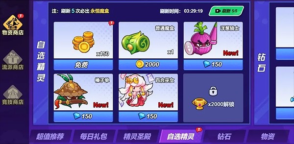 物资商店里的自选精灵栏,可以免费领取150金币,如果视频刷新还可以继续领取。