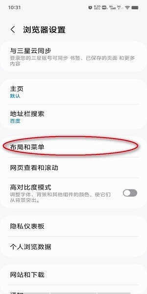 在浏览器设置界面,点击“布局和菜单”;