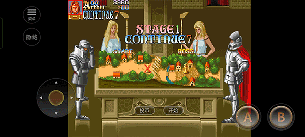 1、首先打开圆桌骑士街机经典手机版,点击投币开始游戏;