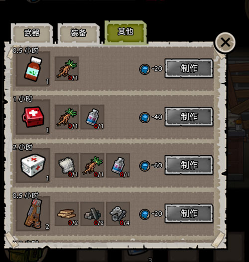 《幸存者:危城》食物和药品系统中药品材料分为三大件:草药、酒精和纱布。在建筑物中或者NPC那里看到这几样药品材料,不要犹豫,果断入手,过了这村就没这店了。拿到药品材料之后就可以去工作台制作各类药品了。一级工作台可以制作止血药,二级工作台可以制作医疗包,三级工作台可以制作急救箱。这三种药品都是行走江湖不可或缺的必备良药。