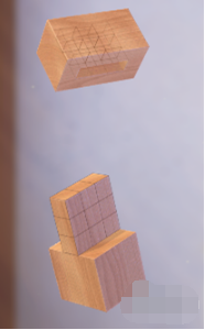 4、旋转两个木料结构,能够紧密贴合在一起就可以点击【组合】,完成的第一件小格肩榫结构。