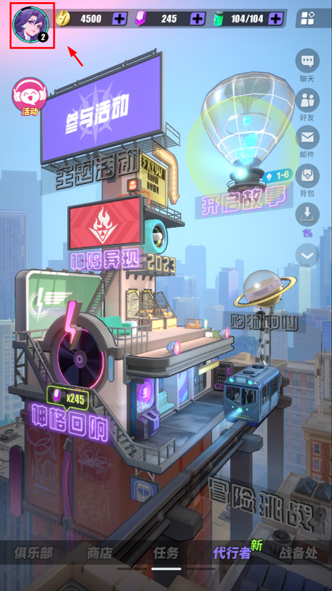 1、首先打开众神派对手游,进入游戏后,点击左上角头像按钮;
