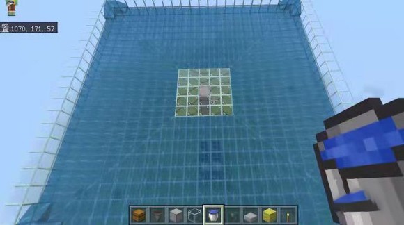 2、之后在Y坐标为158格的地方建造一个23×23的平台,平台四周有两格高的围墙,四周放水冲刷怪物,需要注意的是要从角落数第三格开始放水,不然会形成无限水,中间的洞口是让怪物掉下去的。