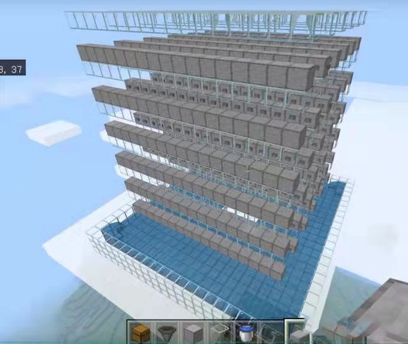 1、在Y坐标为128格的地方做一个5×5平台,上面放漏斗,这是收集的地方。