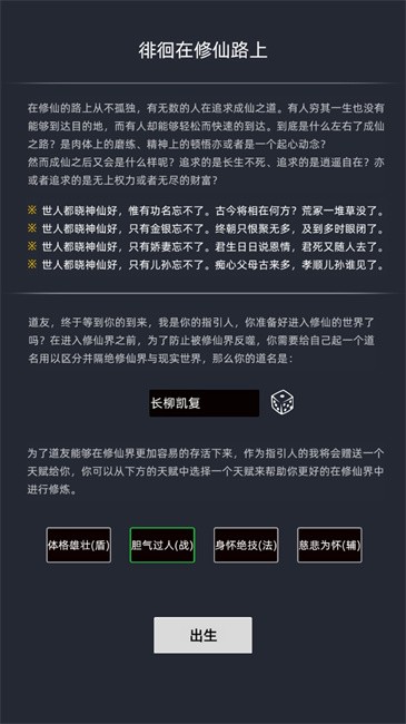 徘徊在修仙路上是一款采用文字形式进行呈现的冒险修仙类游戏,其中采用比较独特的背景进行内容的呈现,玩家可以根据需要打造出独特的角色,在地图中更好的进行挑战,多种不同的功法可以进行学习,随着游戏的进行还有更多不同的物品可以获取到,玩家可以在其中自由进行技能的搭配,更好的在这里进行挑战,多种不同的结局内容可以达成,随着游戏进行更多内容可以解锁。