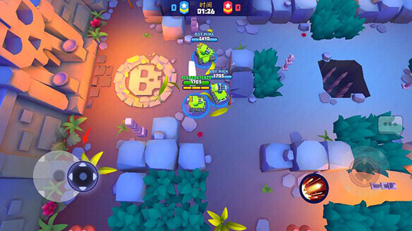 1、首先我们进入TanksALot游戏中,拖动蓝色操纵杆移动坦克;