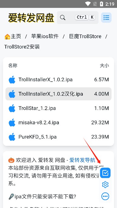 1、在本站下载安装trollstore2巨魔商店