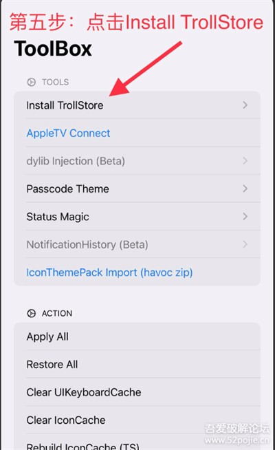 第五步:点击Install Troll Store(其他不要乱动)