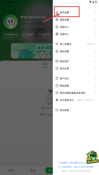 3、在设置菜单中,点击账号设置选项,进入账号设置页面。