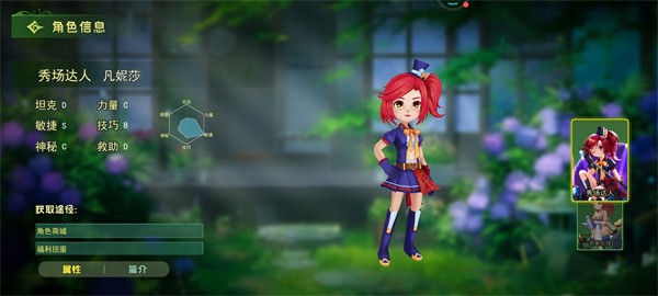 介绍:雪莉是学园中的清新偶像,以灵活的走位和高效的救助能力著称。虽然攻击力平平,但凭借出色的敏捷性(S级)和团队救助技能(B级),成为战场上不可或缺的支援角色。
