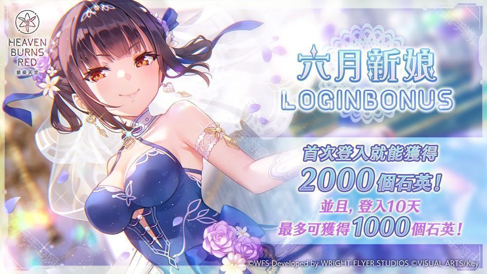 最多能获得 3000 个石英!举办六月新娘 登入奖励
