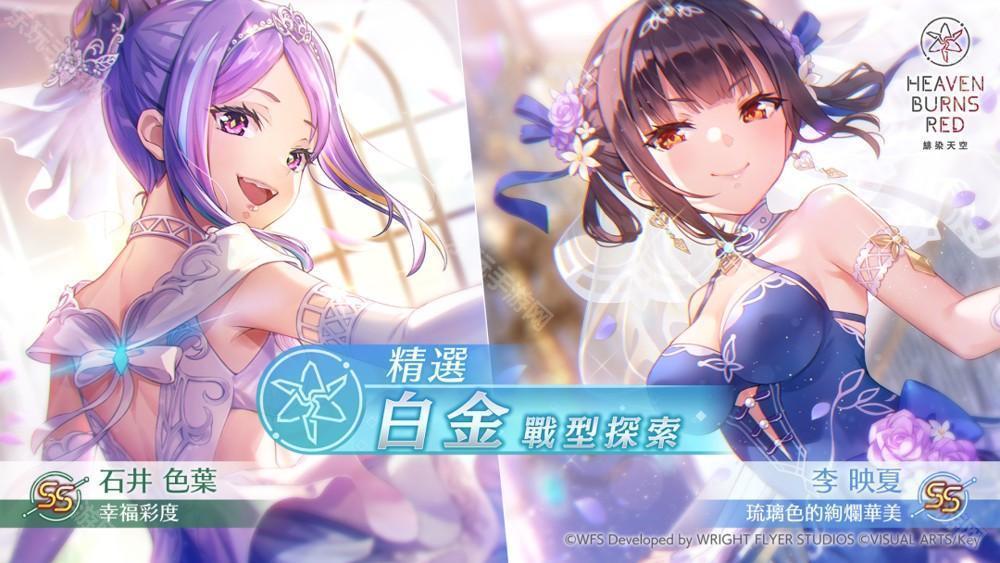 Wright Flyer Studios × Key 戏剧性 RPG《绯染天空 Heaven Burns Red》于5月16日举办新服装 SS 大岛四叶草登场的「精选白金战型探索」,本次的战型探索能每天免费进行 1 次。今日也举办期间限定 SS [随侍公主] 和泉由希再度登场的「期间限定齐奏战型探索」,再度登场同时追加突破极限 Lv.4 特性。消耗生命力就能获得石英和必出 S 以上战型探索券的「Early Summer 特别活动!期间限定任务」同时进行中。