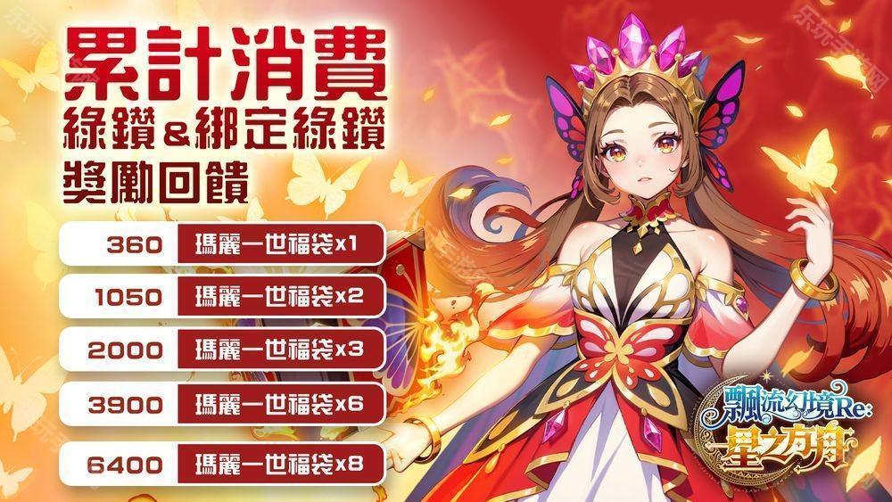 6/3(二)开服后~6/12(四)维护前,期间内累计消费「绿钻」或「绑定绿钻」达指定数量,即可获得「玛丽一世福袋」。开启后有机会获得「玛丽一世选择券」、「炽热玫瑰」、「伙伴遗忘卷轴」、「3 倍经验圣水」等各式虚宝道具。