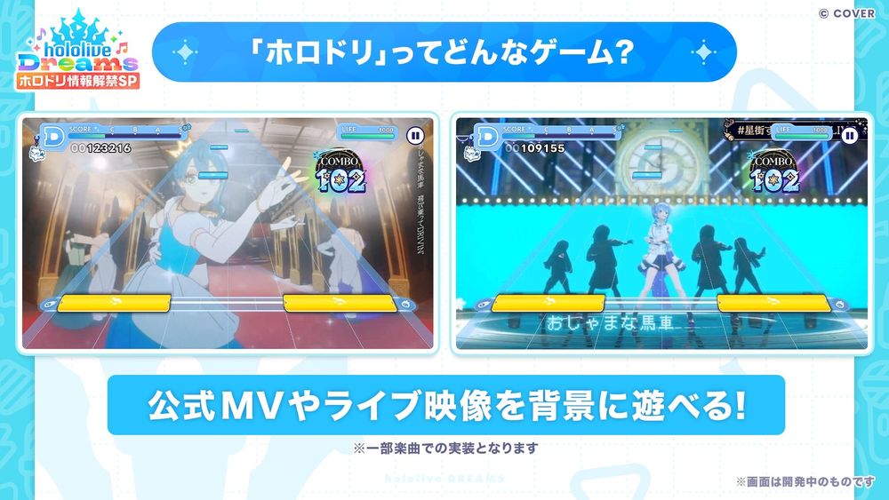 《hololive Dreams》是有女性 VTuber 团体「hololive」旗下总数超过 50 位艺人参加的 hololive 首款官方智慧型手机游戏。本作除了能让任何人皆可轻鬆的透过节奏游戏享受「hololive」的音乐,还导入了可游玩自创谱面的「创作谱面」等各种独家功能。