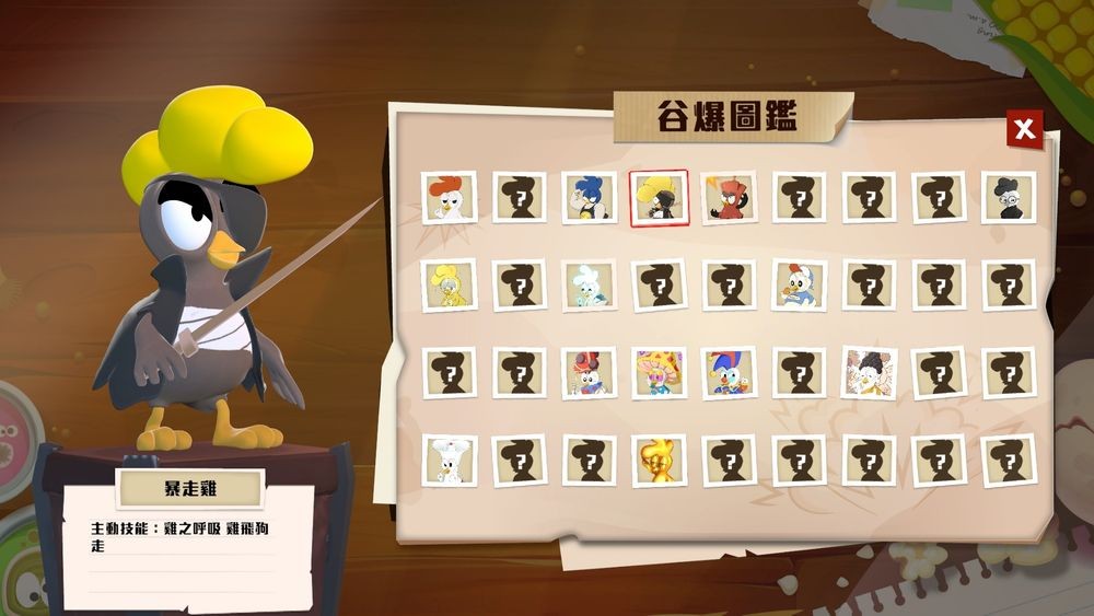 在《谷爆农庄》有著各式各样、吸引人注目的谷爆鸡,这些角色设计灵感源自职场常见的人们,玩家会窥见牠们总带著上班族工作时的各种表现。这些鸡队友会不时展现出奇特的习惯,让玩家感觉似曾相识,玩家在经营农庄的同时,必须与这些随时(通常)「帮倒忙」的伙伴互动,或是利用牠们引发一场更混乱的化学反应。
