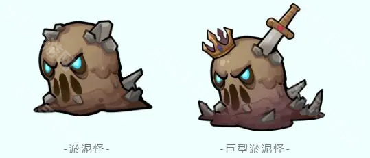 淤泥怪(肉盾怪)特点是首次死亡后化作淤泥,开始原地持续恢复一定生命力,需要英雄在此期间持续输出伤害。同时淤泥状态时,会为其他怪物创造前进窗口。巨型淤泥怪血量更高,难以被击退。