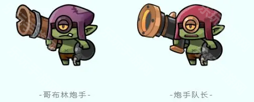 哥布林炮手(伤害怪)对防线拥有远程打击能力,会在其他怪物的掩护下发起攻击,受到法师伤害提升20%。炮手队长血量更高,难以被击退。