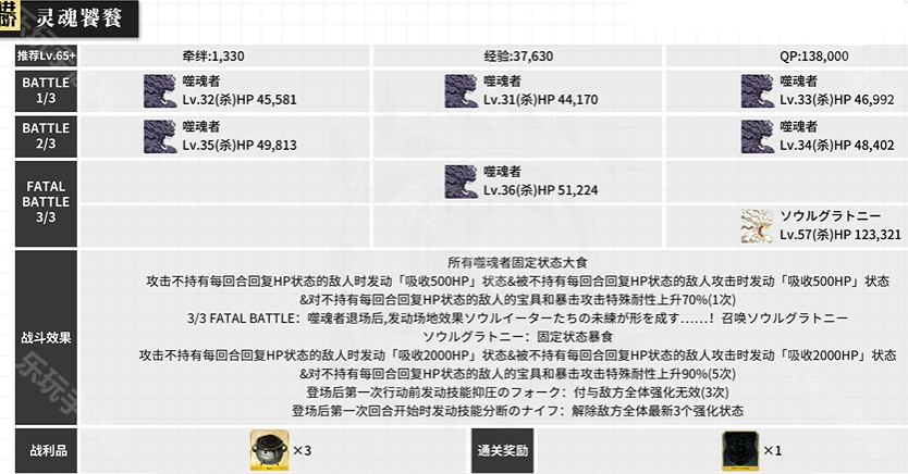 FGO进阶关卡灵魂饕餮怎么打?游戏第18弹进阶关卡现已开放,通关本期进阶关卡后可以获得专属通关奖励,其中灵魂饕餮通关后会赠送提高黑兽脂掉落率的礼装。那么接下来就和乐玩小编一起看看《FGO》进阶关卡灵魂饕餮队伍推荐吧。