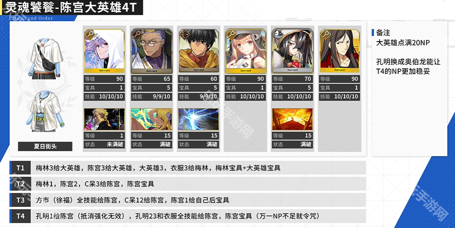注:大英雄点满20NP,孔明换成奥伯龙更好