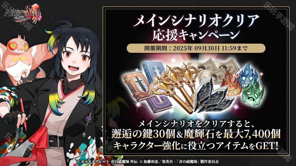 为纪念《AlternaWelt -青之驱魔师 外传-》正式开服,游戏内将限期举办以下活动。