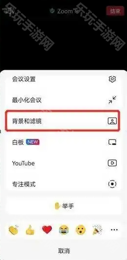 3、然后在手机端上登陆和网页端相同的账号,进入会议后打开会议设置,找到背景和滤镜