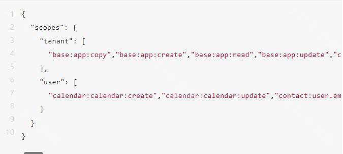 在应用的「权限管理」中,配置以下权限(直接复制粘贴即可),确保机器人能正常接收、发送消息: