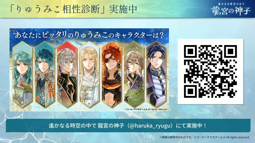 除此之外,《遥远时空 龙宫的神子》官方 X 目前正在举办角色的契合度诊断活动;《遥远时空 龙宫的神子》上线纪念週边也已开放预购,预购期限至 2025 年 12 月 16 日为止。