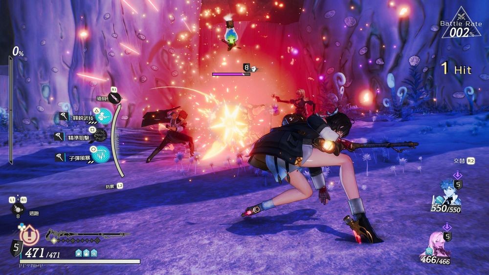 本作的战斗是以直觉操作即时进行。切换交战距离时,近距离及远距离能够使用的技能也会产生变化。若能抓准时机迴避或防御敌人的攻击,就能让战斗变得对我方有利。3 名前卫及 3 名后卫的伙伴也可以在战斗中自由更换,满足特定条件还可以施展强力的连携攻击「友情合击」,与伙伴协力对抗敌人。