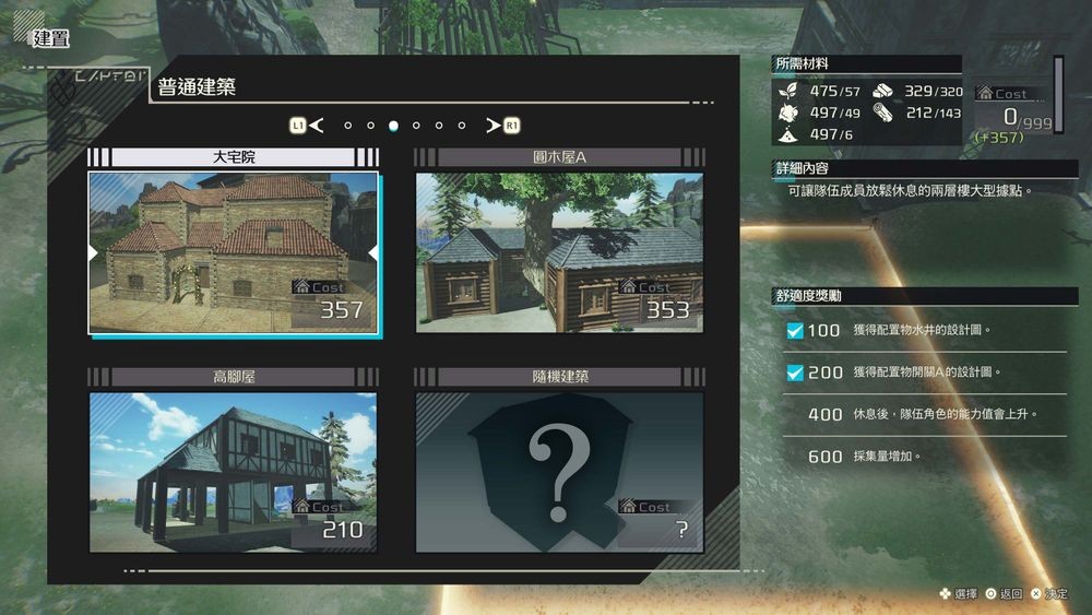 开放地标后就可以建置新的据点。墙壁、地板、屋顶、家具等都可以依照自己喜好自由配置建造出属于自己的据点。也可以从目录中挑选想要的样式,简单完成据点的建置。此外,提升据点的「舒适度」还可以获得额外奖励,例如扩展据点、或是强化优米雅一行人的能力等。