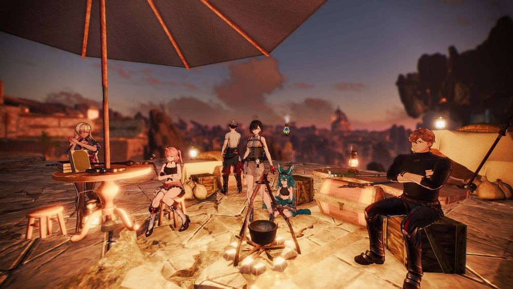 制作露营道具后在原野使用即可设置露营地。可以在露营地进行料理或休息,与伙伴一起度过休息时光。此外,进行料理可以获得有助于探索或战斗的各种效果,还会触发只有在露营时能看到的事件!